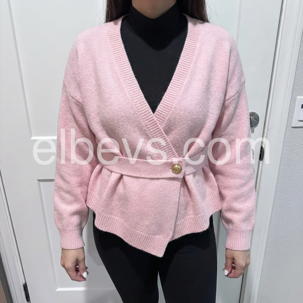 What a lovely smooth fitting sweater with ultra soft material. Beautiful pink color. I received so many compliments wearing it.