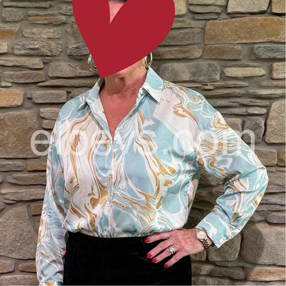 This top is fantastic for travel. I packed it for a business trip and it barely wrinkled in my suitcase. The blue and gold marble effect is elegant and effortless. I am going to buy more patterns if they have them!