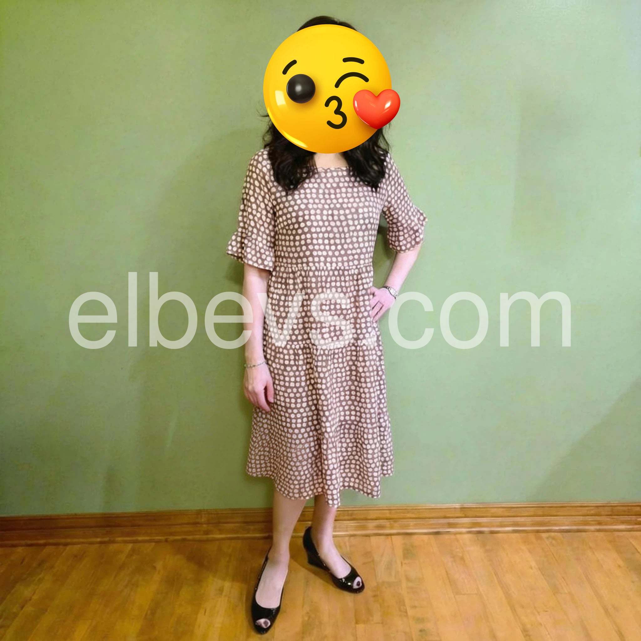 Exceeded my expectations! The color is a gorgeous neutral, and the polka dots give it a fun pop. True to size and a very forgiving and comfortable cut.