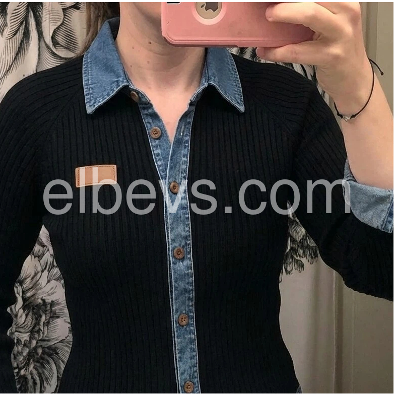 I’m really impressed by the quality of this top. The ribbed knit feels soft and cozy, and the denim front adds a cool casual vibe. The wooden buttons give it an extra classic touch, and the collar frames my face nicely. I wore it during a mild evening and stayed warm without feeling bulky. Definitely worth adding to my wardrobe.