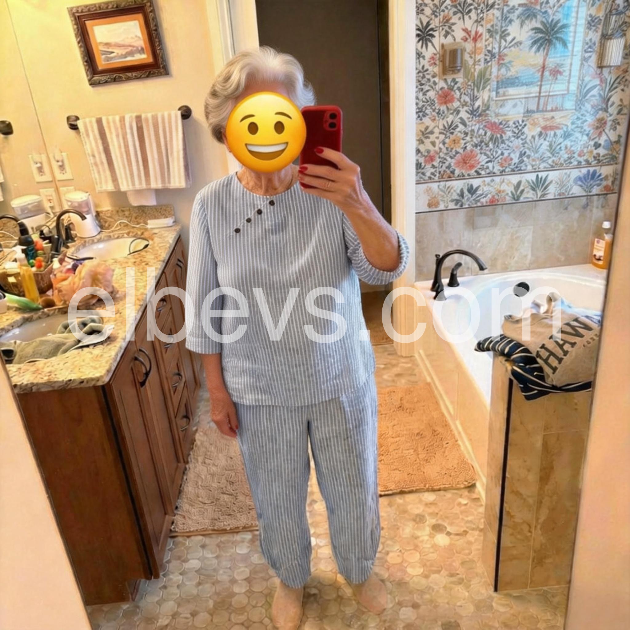 As a curvier woman, I appreciate how forgiving this set is. The top doesn't cling to my stomach, and the pants are roomy without looking baggy. Extremely happy with this purchase!